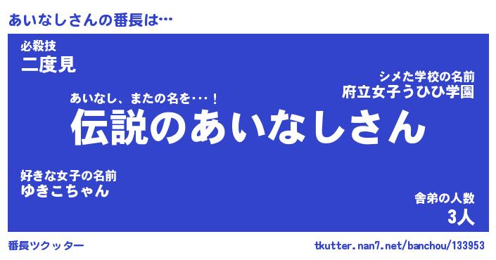 | 意味不明あだ名 | 『ペロリンあいなし』『永久保存あいなし』 |