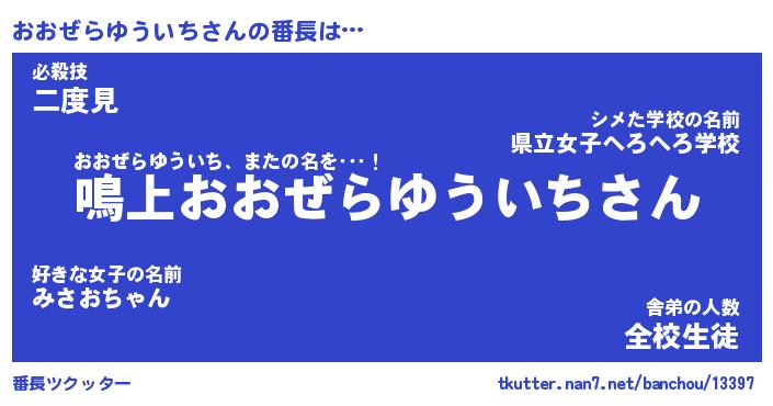 | 伝説のあだ名 | 『封印されしスナイパーおおぜらゆういち』 |
