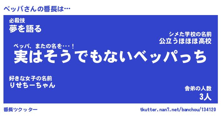 | ヒーロー風カッコイイあだ名 | 『スーパーベッパ』『ウルトラベッパマン』 |