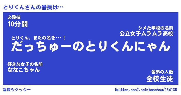 | 意味不明あだ名 | 『ペロリンとりくん』『永久保存とりくん』 |