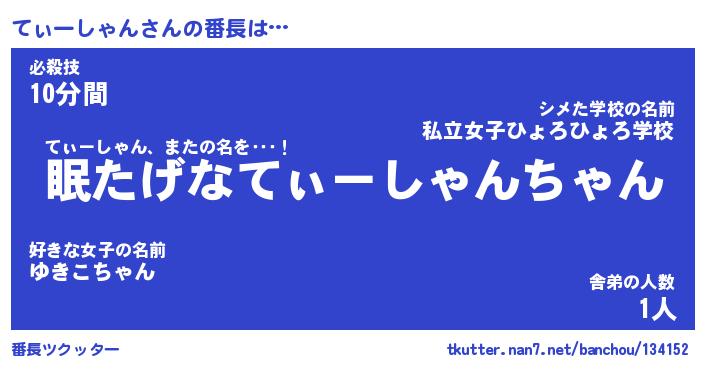 | 伝説のあだ名 | 『封印されしスナイパーてぃーしゃん』 |