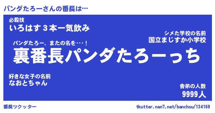 | ヒーロー風カッコイイあだ名 | 『スーパーパンダタロー』『銀牙騎士パン』 |