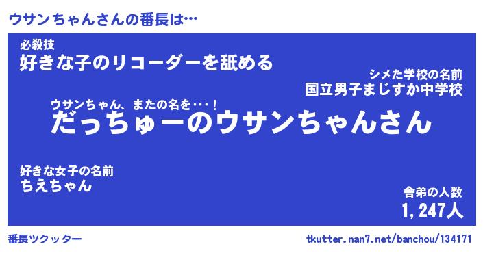 | ポケモン風あだ名 | 『ウサチュウ』『ウサンダネ』 |
