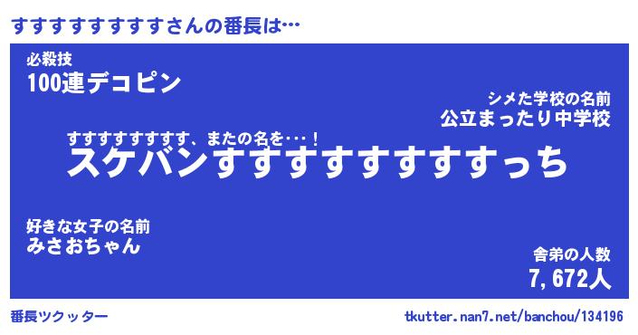 | ピコ太郎風あだ名 | 『スコ四郎』『ピス十郎』『スス一郎』 |