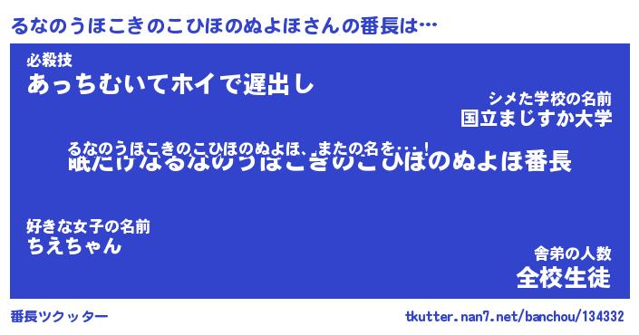 | ヒーロー風カッコイイあだ名 | 『スーパールナノウホコキノコヒホノヌヨホ』 |