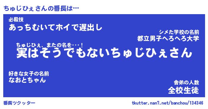 | 2回繰り返すあだ名 | 『ちゅちゅ』『ちちゅゅ』『うずうず』 |