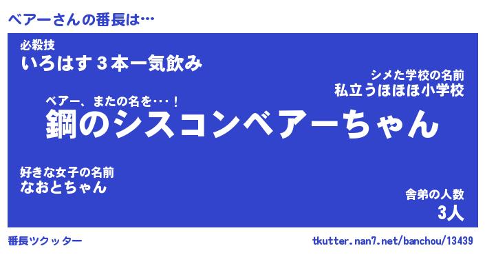 | ヒーロー風カッコイイあだ名 | 『スーパーベアー』『ウルトラベアーマン』 |
