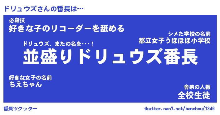 | 肩書あだ名 | 『ドリュウズ店長』『ドリュウズ総理大臣』 |