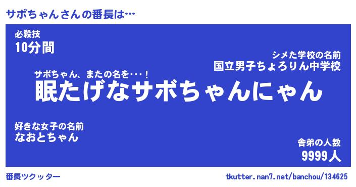 | ファンタジー風あだ名 | 『サボフェル』『エターナルサボチャンー』 |