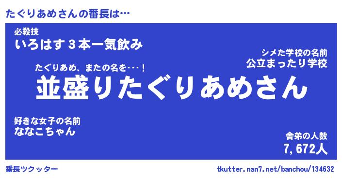 | ヘコむあだ名 | 『たぐもー』『なまこ酢』 |