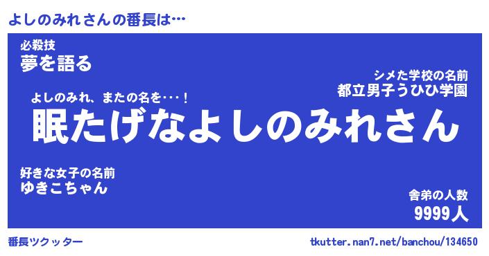 | ヒーロー風カッコイイあだ名 | 『スーパーヨシノミレ』『天弓騎士ヨシ』 |