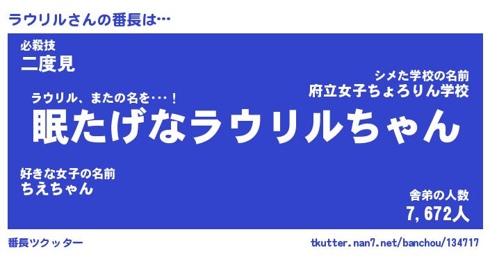 | ファンタジー風あだ名 | 『ラウフェル』『エターナルラウリルー』 |