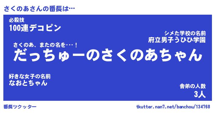 | 2回繰り返すあだ名 | 『さくさく』『ささくく』『おらおら』 |