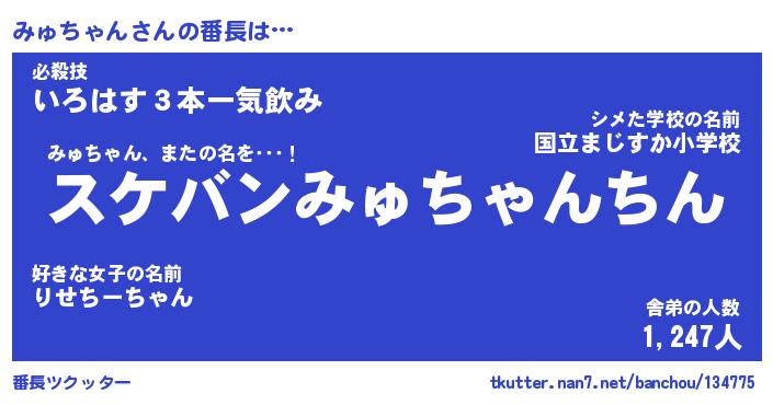 | ヒーロー風カッコイイあだ名 | 『スーパーミュチャン』『銀牙騎士ミュ』 |