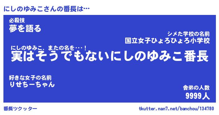 | 肩書あだ名 | 『にしのゆみこCEO』『にしのゆみこ大統領』 |