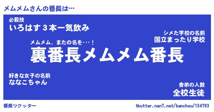 | 意味不明あだ名 | 『ペロリンメムメム』『永久保存メムメム』 |