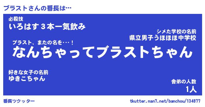 | 男性向けラノベタイトル風あだ名 | 『ブラストの憂鬱』 |