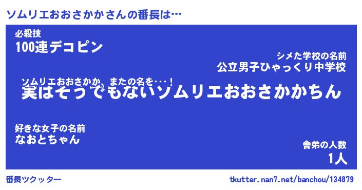 | 伝説のあだ名 | 『封印されしスナイパーソムリエおおさかか』 |