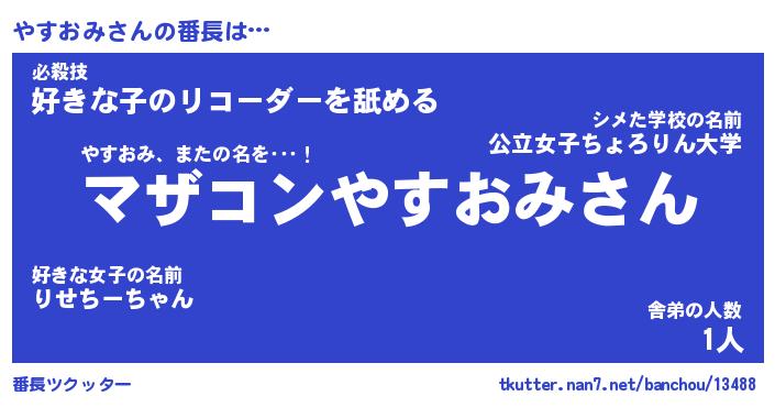 | 肩書あだ名 | 『やすおみ社長』『やすおみ国家主席』 |