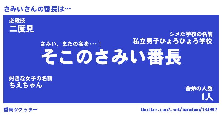 | 意味不明あだ名 | 『ペロリンさみい』『さみいフォーエバー』 |