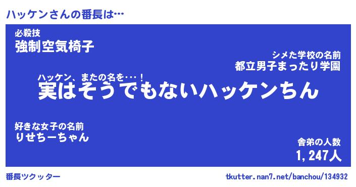| 肩書あだ名 | 『ハッケン社長』『ハッケン総理大臣』 |