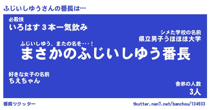 | ヒーロー風カッコイイあだ名 | 『スーパーフジイシユウ』『銀牙騎士フジ』 |