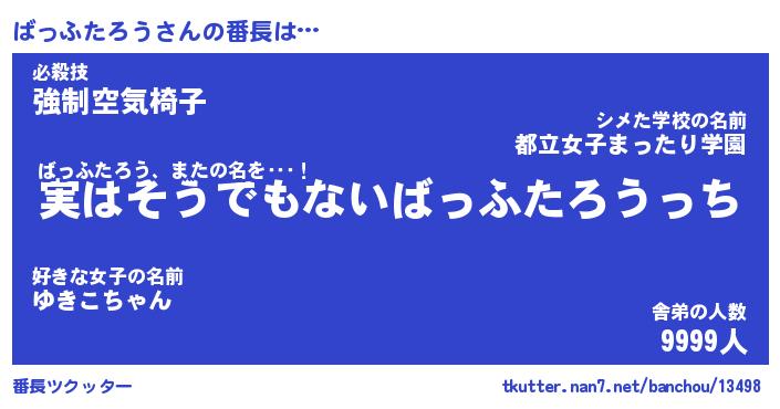 | 肩書あだ名 | 『ばっふたろう社長』『ばっふたろう団長』 |