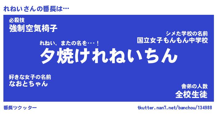 | ヘコむあだ名 | 『れねもー』『つくし』『れねっ子』 |
