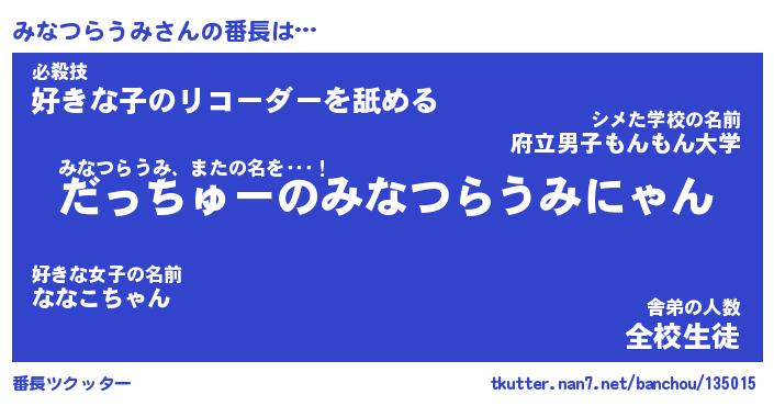 | 猫の名前『みなつらうみにゃん』性別『♀』 |
