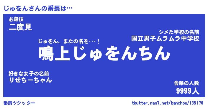 | ヒーロー風カッコイイあだ名 | 『スーパージュヲン』『天弓騎士ジュ』 |