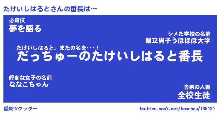 | 伝説のあだ名 | 『伝説のスナイパーたけいしはると』 |