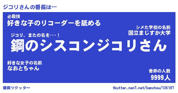 | 意味不明あだ名 | 『ペロリンジコリ』『ジコリフォーエバー』 |