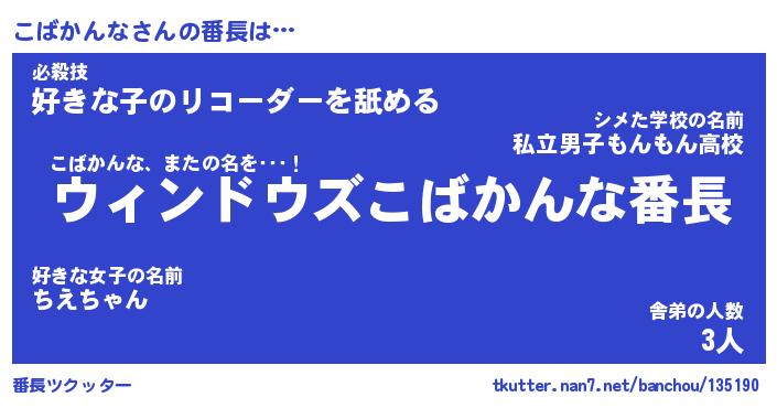 | ファンタジー風あだ名 | 『コバフェル』『エターナルコバカンナー』 |