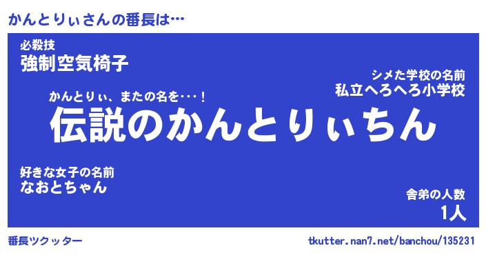 | 男性向けラノベタイトル風あだ名 | 『かんとりぃの憂鬱』 |