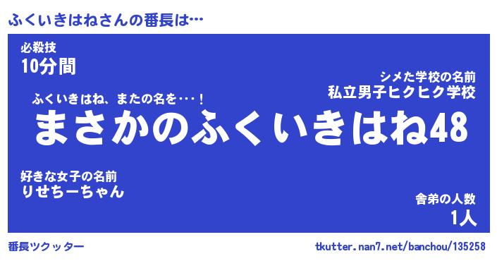 | 恥ずかしいあだ名 | 『プリティーふくいきはね』『ふくっちょ』 |