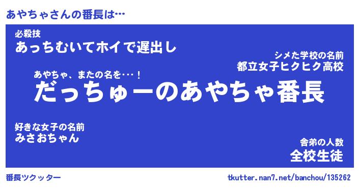 | ヒーロー風カッコイイあだ名 | 『スーパーアヤチャ』『暗黒騎士アヤ』 |