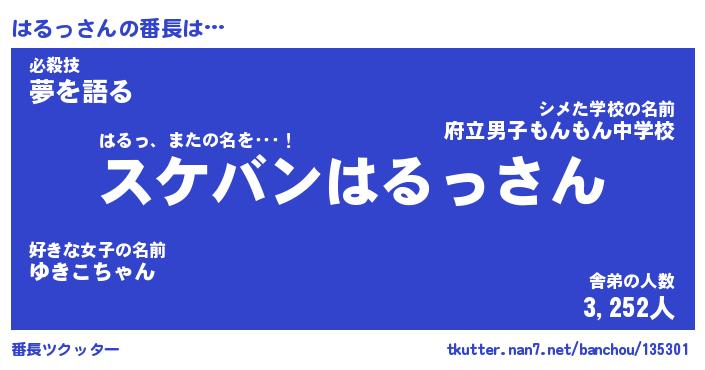 | ポケモン風あだ名 | 『ハルチュウ』『ハルッダネ』 |