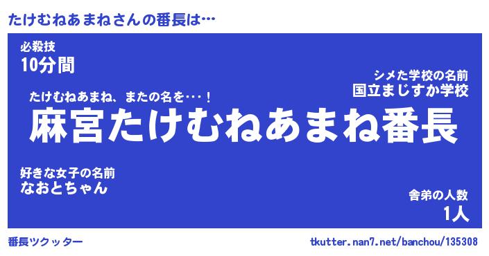 | 2回繰り返すあだ名 | 『たけたけ』『たたけけ』『いそいそ』 |