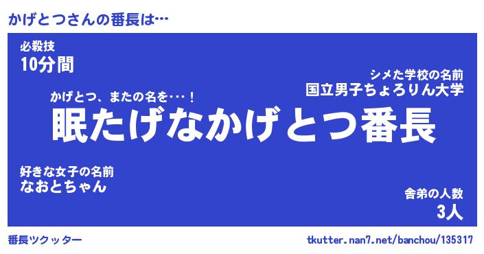 | ファンタジー風あだ名 | 『カゲフェル』『エターナルカゲトツー』 |