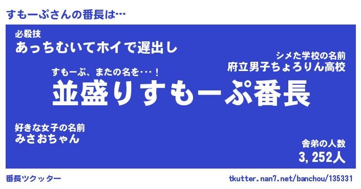 | 意味不明あだ名 | 『ペロリンすもーぷ』『永久保存すもーぷ』 |