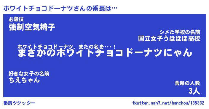 | 伝説のあだ名 | 『伝説のスナイパーホワイトチョコドーナツ』 |