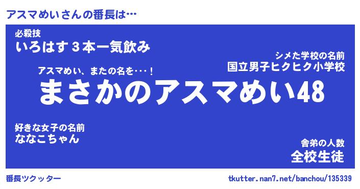 | 伝説のあだ名 | 『伝説のスナイパーアスマめい』 |