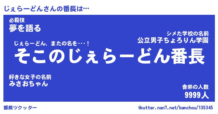 | 男性向けラノベタイトル風あだ名 | 『じぇらーどんの憂鬱』 |