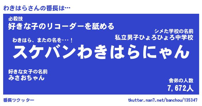 | 肩書あだ名 | 『わきはら店長』『わきはら国家主席』 |