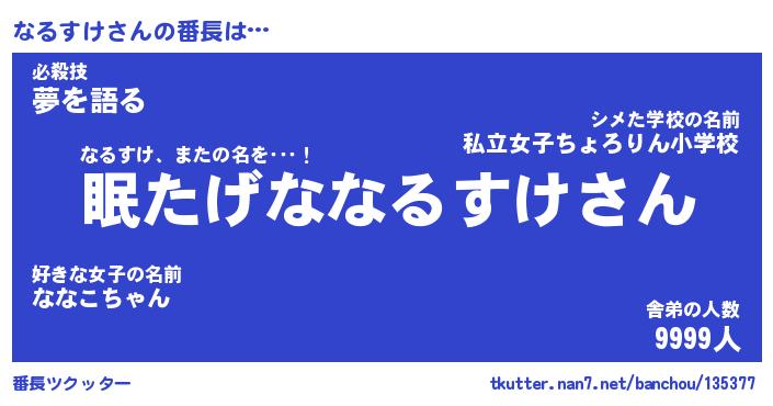 | 意味不明あだ名 | 『ペロリンなるすけ』『永久保存なるすけ』 |