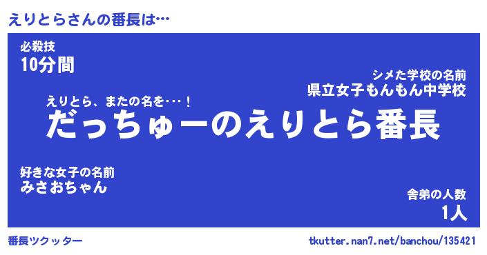 | 肩書あだ名 | 『えりとら社長』『えりとら総理大臣』 |