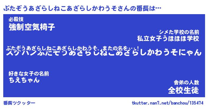 | 2回繰り返すあだ名 | 『ぶたぶた』『ぶぶたた』『いらいら』 |