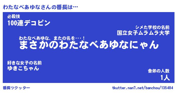 | 女子向けラノベタイトル風あだ名 | 『(仮)わたなべあゆなのやんごとなき事情』 |