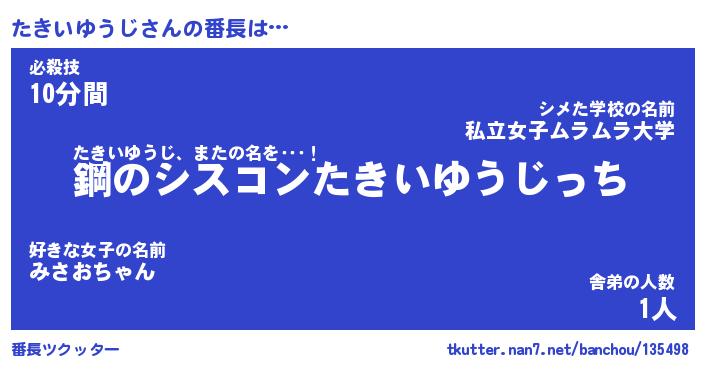 | 男性向けラノベタイトル風あだ名 | 『タキイユウジアートオンライン』 |