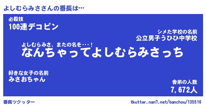 | 肩書あだ名 | 『よしむらみさ御曹司』 |